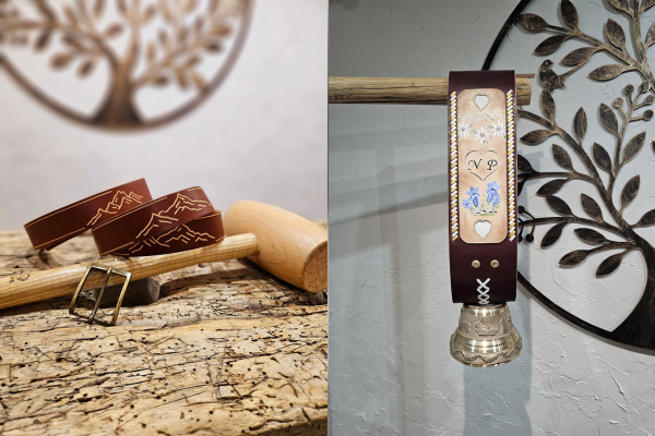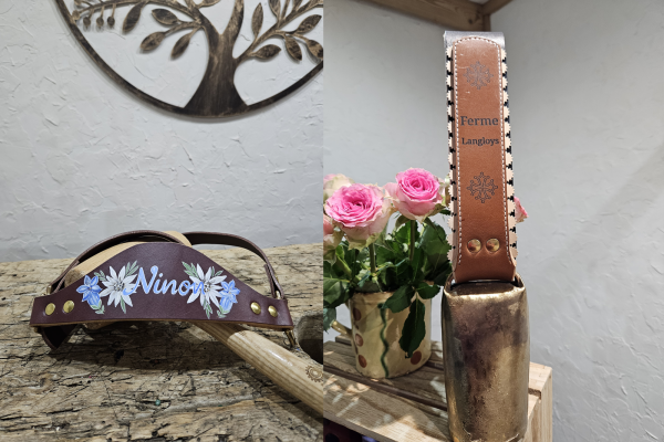 Accueil autour d’une boisson. Présentation du métier de bourrelière avec la découverte des différentes texture de cuir, suivi de l'apprentissage des outils. Puis création d'un porte clé clochette et personnalisation d'une petite vache en bois .