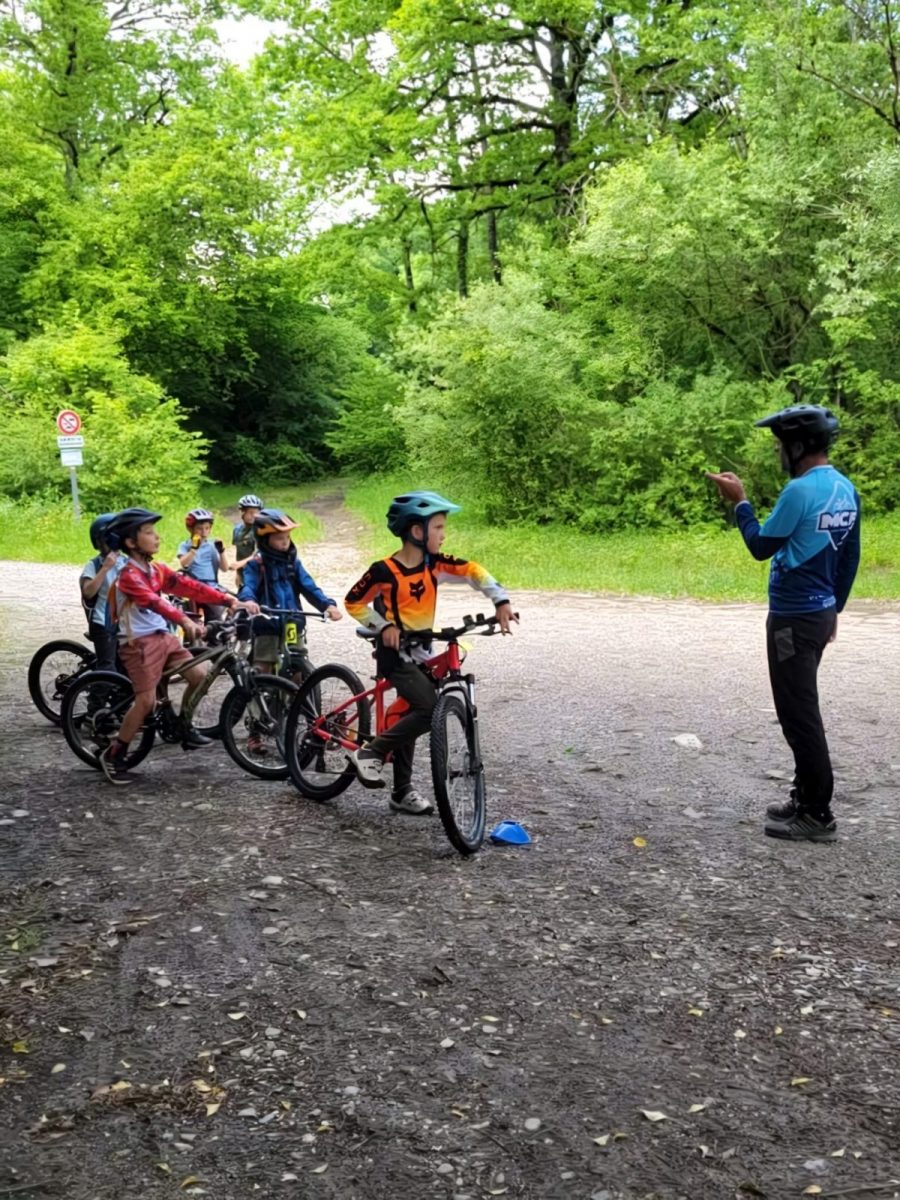Au printemps et en automne, apprentissage du vélo et du VTT par le jeu et petite balade, les mercredi ou samedi matin suivant la tranche d'ages avec des groupes de 5-6 ans, 7-8 ans.
