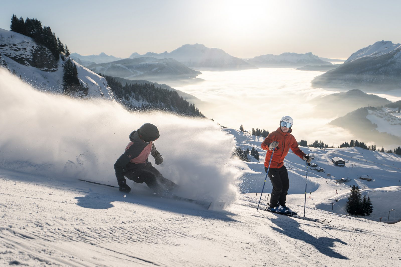 Le Grand-Bornand avec : 24 remontées mécaniques, 84 km de pistes soit 46 pistes (5 noires, 13 rouges, 12 bleues, 16 vertes), 1 snowpark + 1 zone ludique.