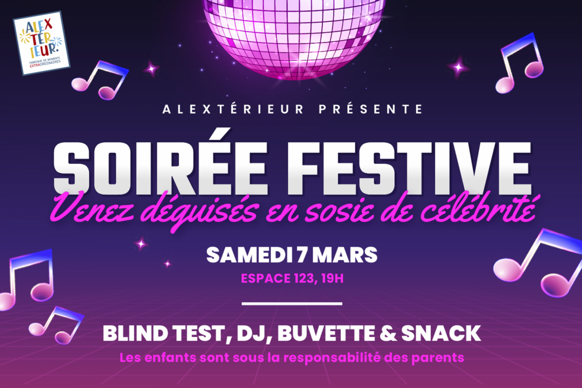 À propos Tarifs Informations de contact Retour à la liste Samedi 7 mars 2026 à partir de 19h. Blind test, déguisement. Buvette et petite restauration. Tarifs Entrée libre.