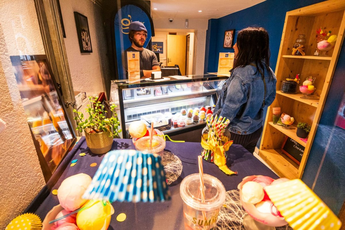 Nichée sous les arcades à Thônes, le Glacier des Aravis est un véritable passage obligé pour les gourmands. À seulement 21 ans, Jean Wajda, l’artisan glacier vous ravira les papilles.