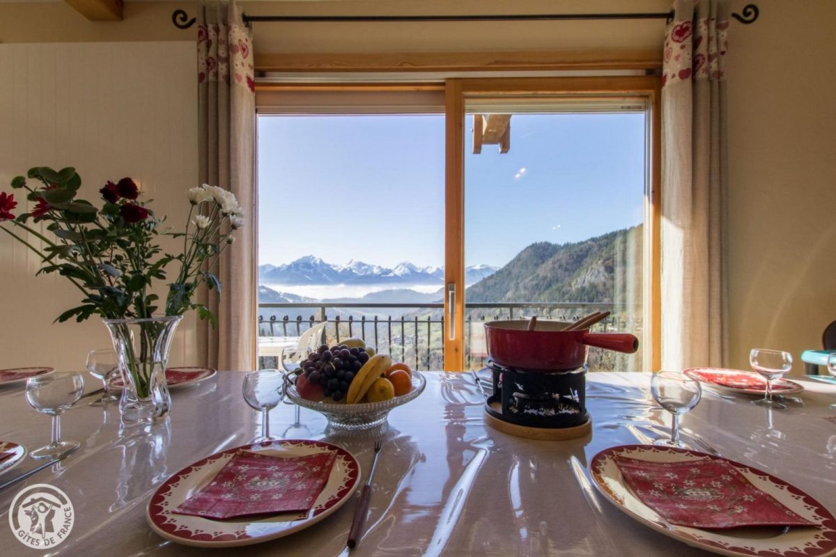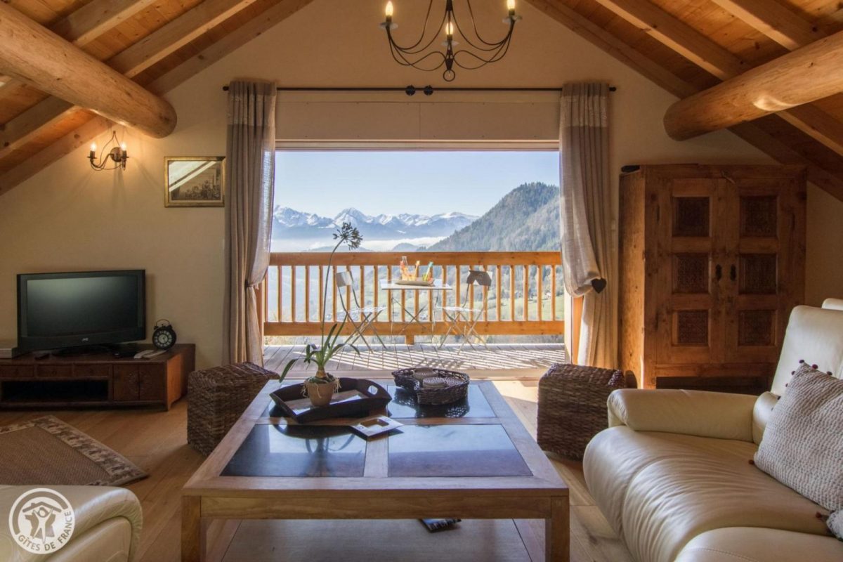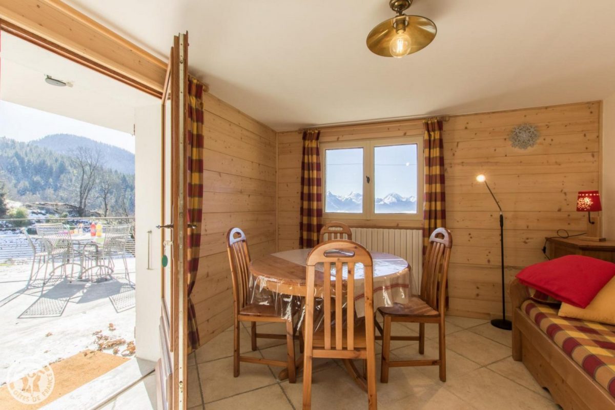 Magnifique panorama sur les montagnes environnantes pour cette maison indépendante dans un hameau calme, entre stations de ski des Aravis et le secteur touristique du bout du Lac d'Annecy. Ambiance chaleureuse et prestations de qualité.