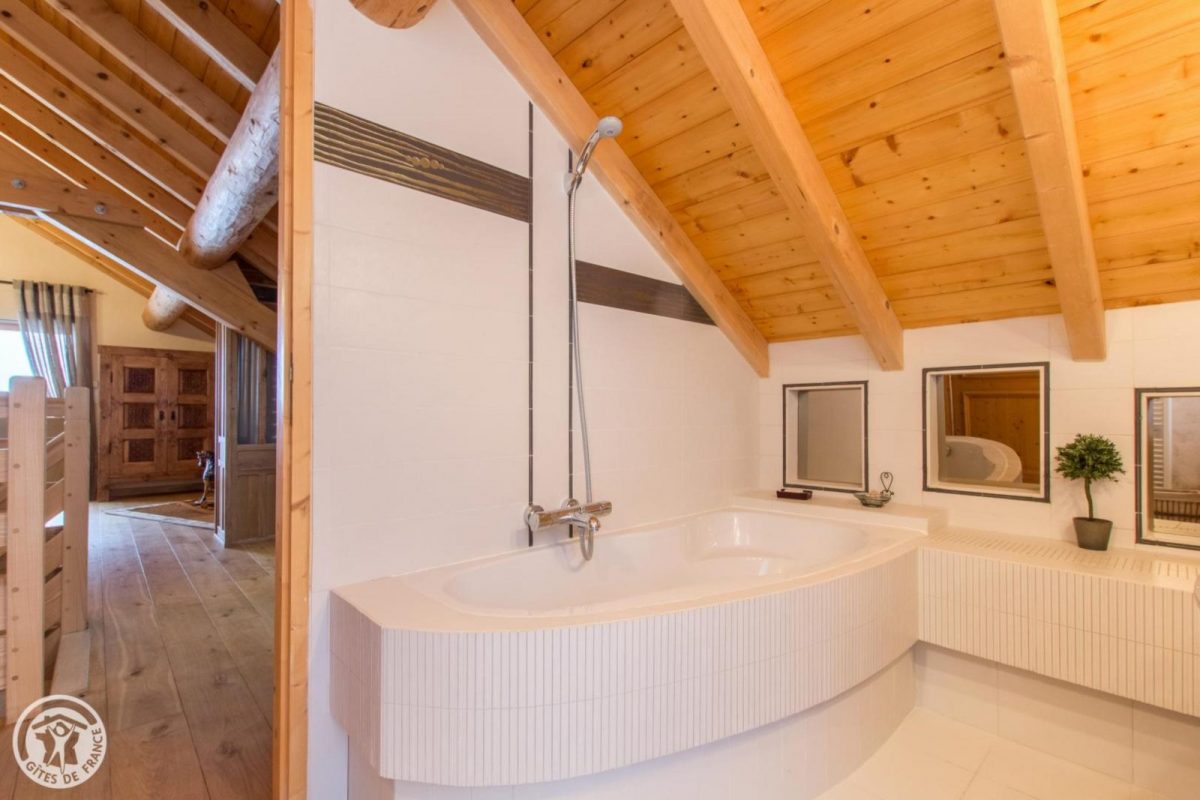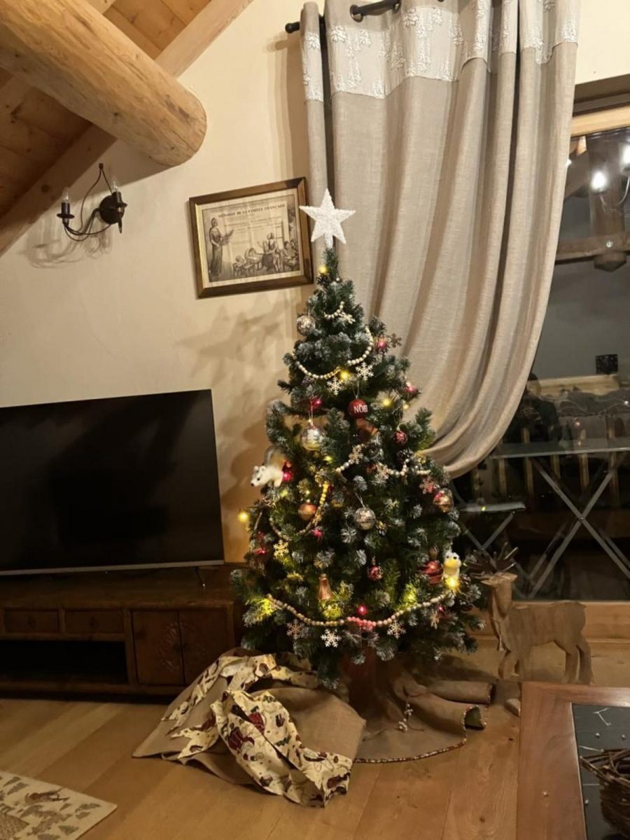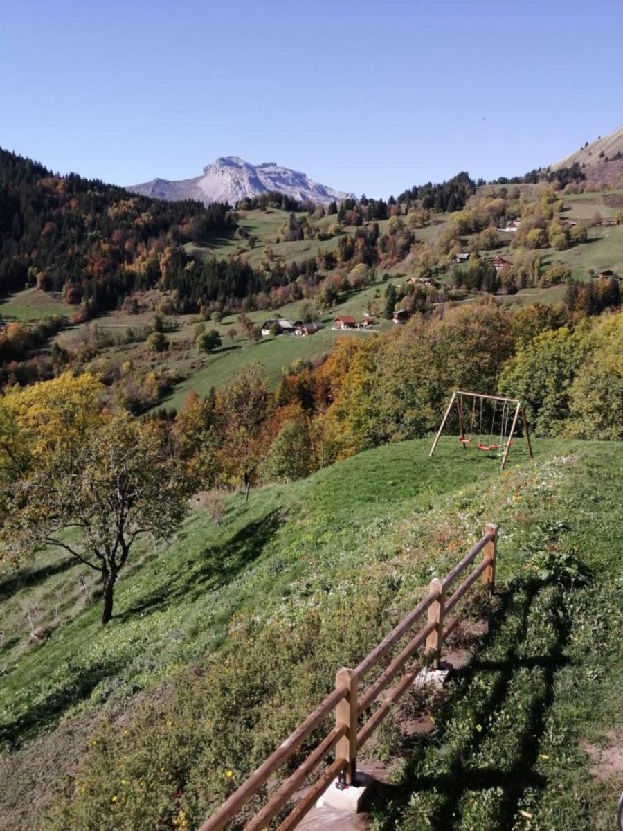 Terrasse aménagée sur la partie basse du chalet / rez-de-jardin : salon de jardin, chaises longues, barbecue. Balcons. Magnifique panorama sur les montagnes. Jardin + terrain en pente sur l'avant de la maison. 2 places de parking à côté de la maison + parking privatif à 50m de la maison. Thônes à 14km (commerces, services, animations, piscine, équitation), Lac d'Annecy 22km, ville d'Annecy 35km. Départs de randonnées depuis la maison (Mont-Charvin). Randos dans le massif des Aravis. Stations de ski des Aravis : Manigod/La croix Fry à 23km, La Clusaz / Le Grand-Bornand 25km. Réseaux téléphoniques limités sur place.