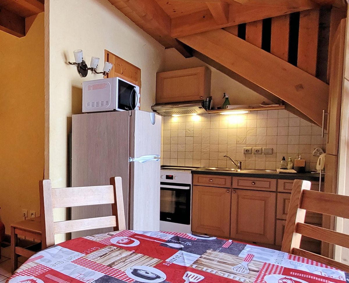 Dans un ensemble de gîtes, gîte de 39 m² en rez de jardin sur 2 niveaux, 1 chambre, entrée indépendante. Cuisine ouverte sur séjour (clic clac), salle d'eau wc (douche).