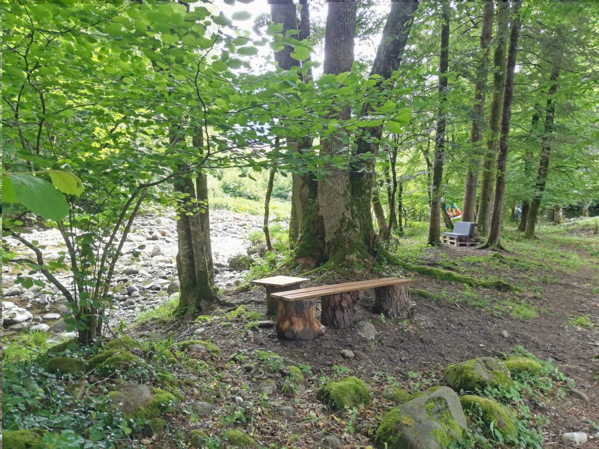 Chauffage central, terrasse, salon de jardin, terrain, balançoire, ping pong, barbecue, parking. Lave linge commun. Rivière à proximité. Route passagère.