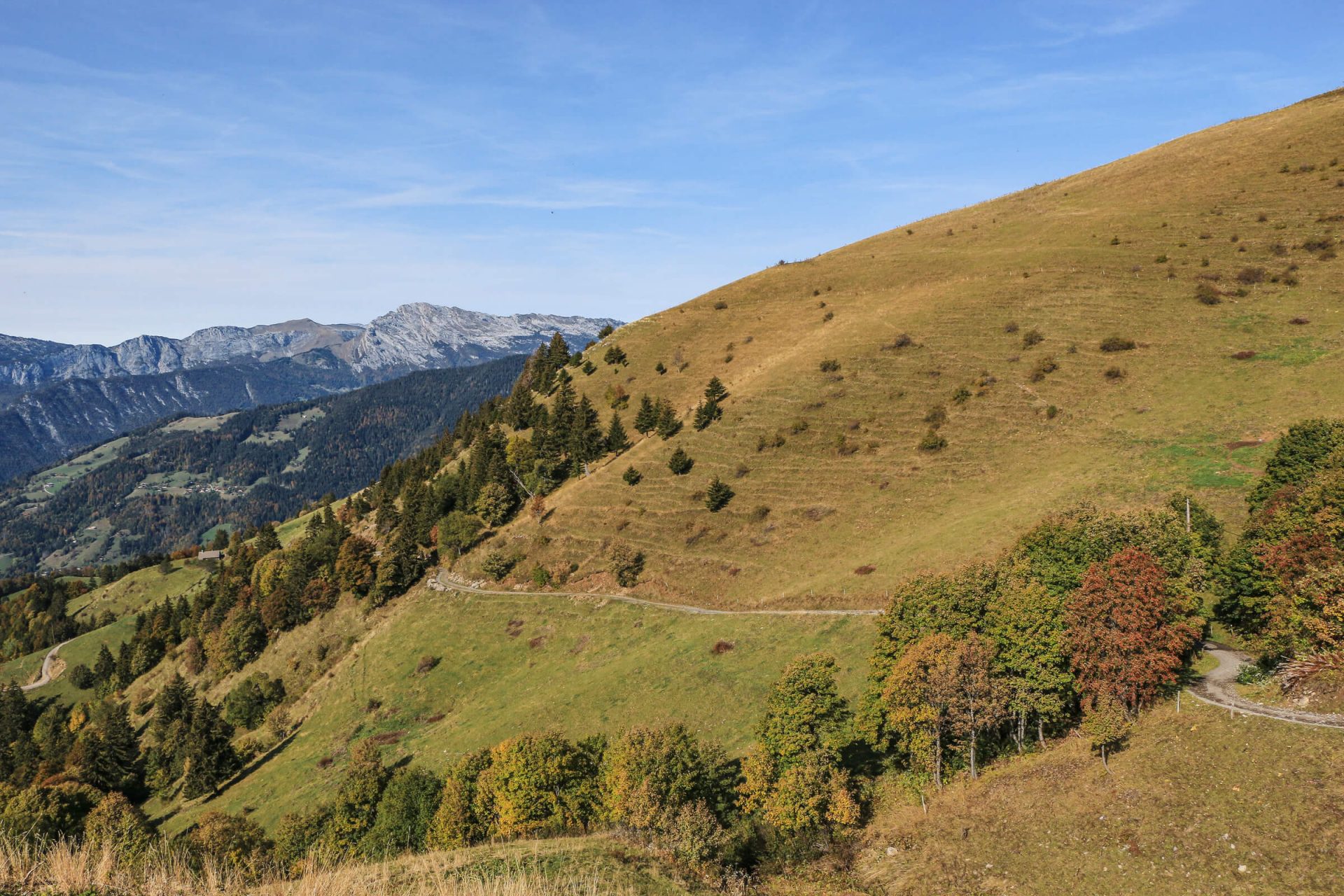 Très agréable en toute saison, vous marcherez au milieu des alpages, des fermes et de leurs troupeaux. La montagne du Sulens compte au total deux alpages. Le premier que vous croiserez en montant est l’alpage de la famille Gay-Perret, le GAEC la Croix de Sulens, qui retrouve ses quartiers d’hiver à Montisbrand, également sur la commune des Clefs. Vous pourrez admirer les vaches qui broutent au bord du chemin et vous arrêtez acheter le fameux Pavé de Sulens, donc le GAEC la Croix de Sulens en a le secret (en vente également à l’auberge de Plan Bois au col).